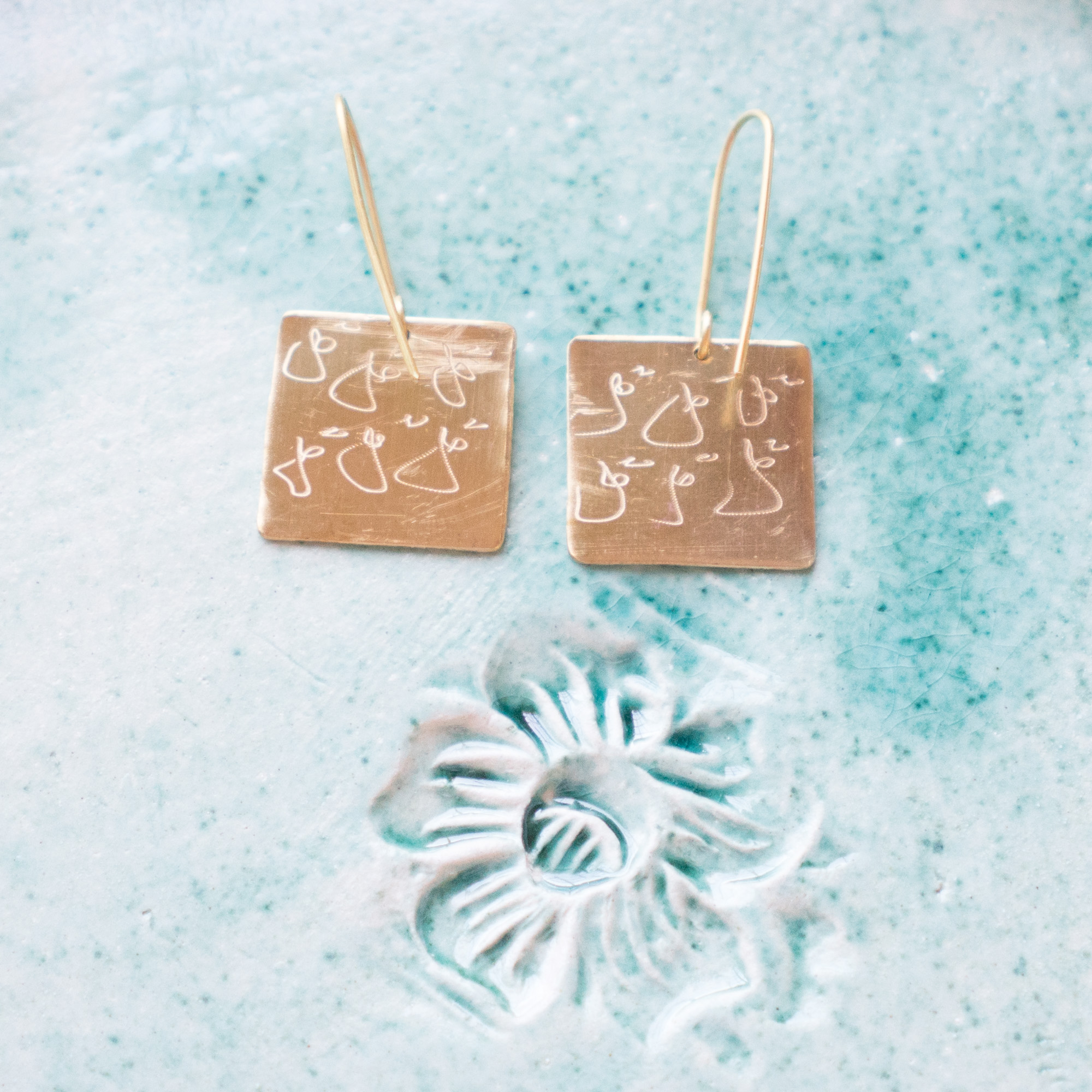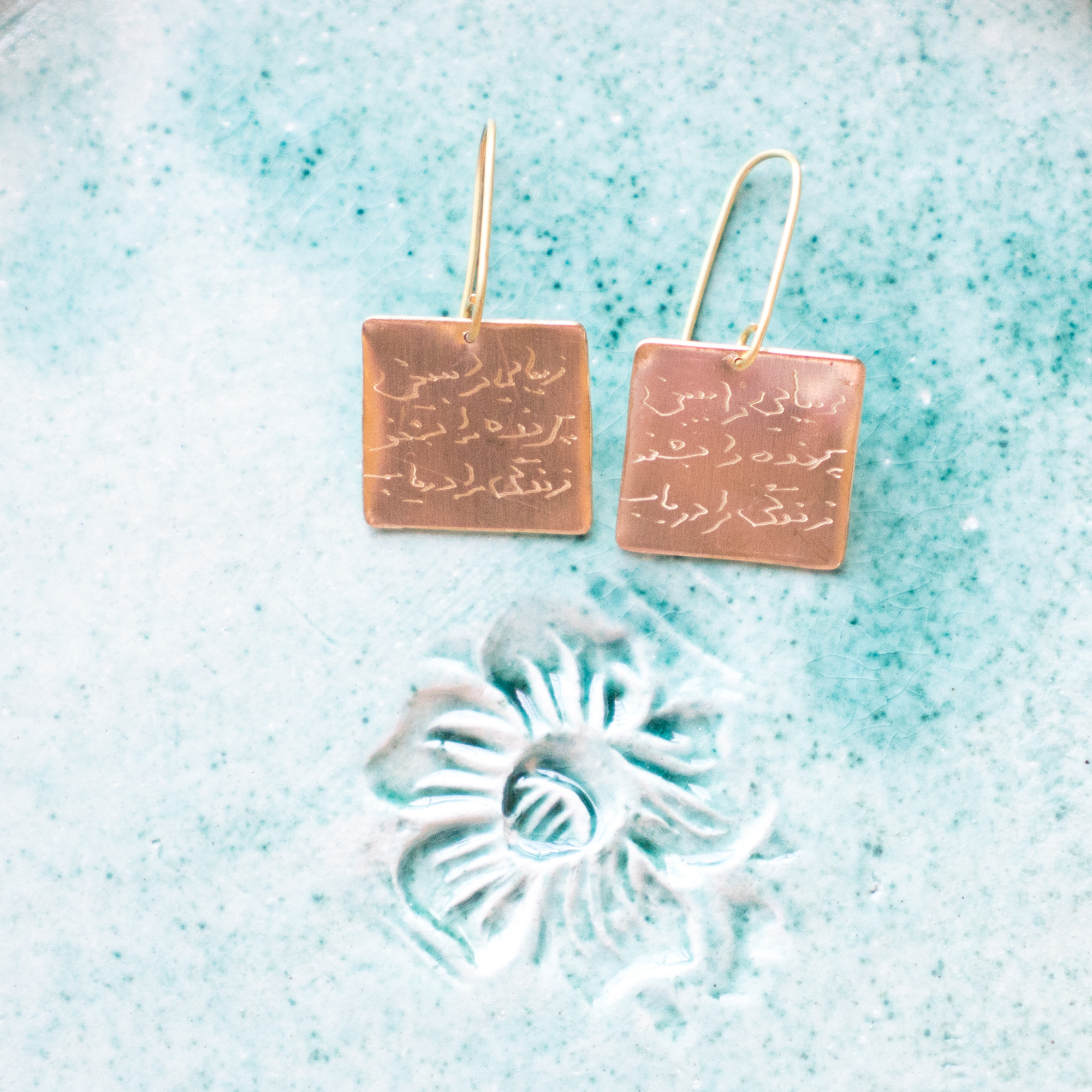 Handmade pure brass earring. Hand-carved with a Farsi poem