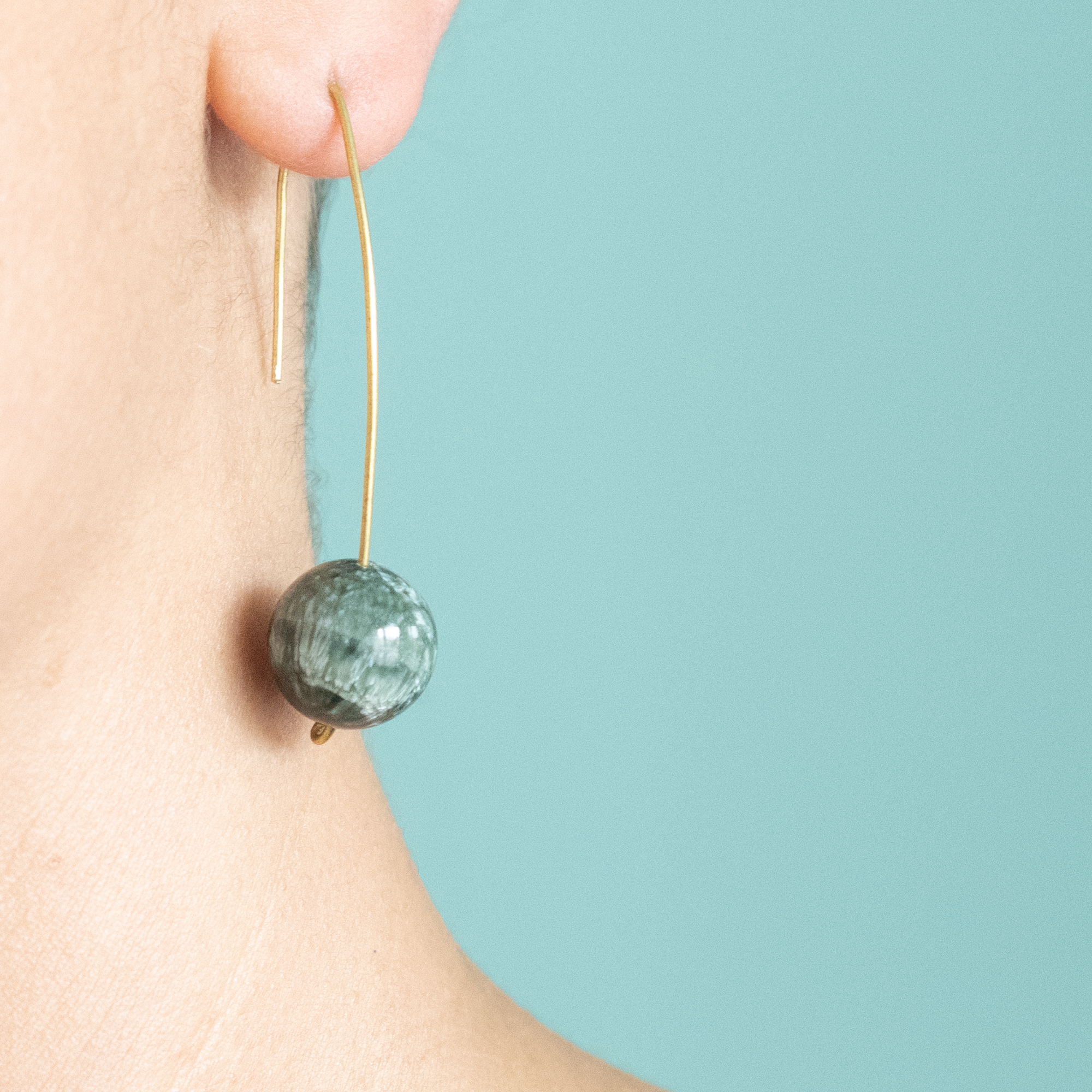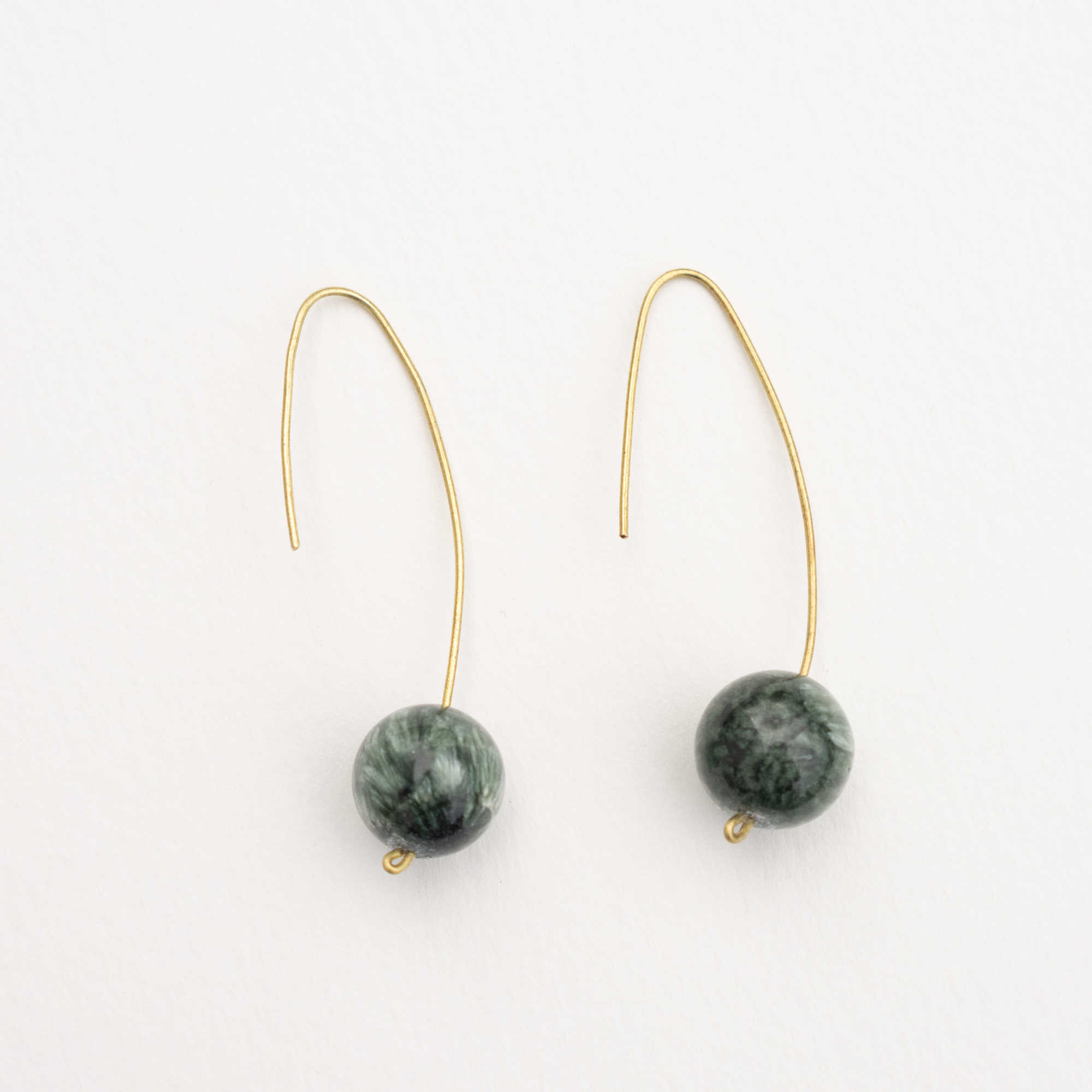 Fully handmade earrings with hand-shaped pure brass and beautiful seraphinite