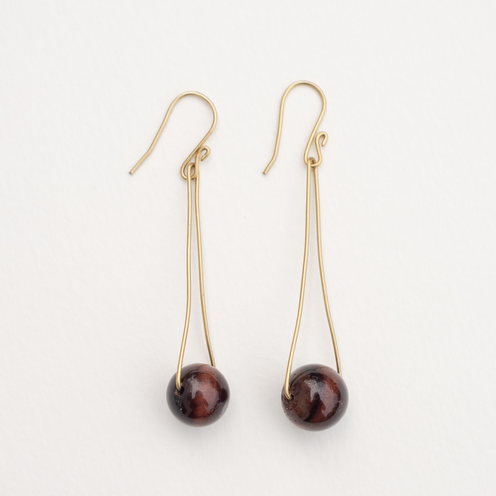 Fully handmade long earrings with hand-shaped pure brass and tiger eye