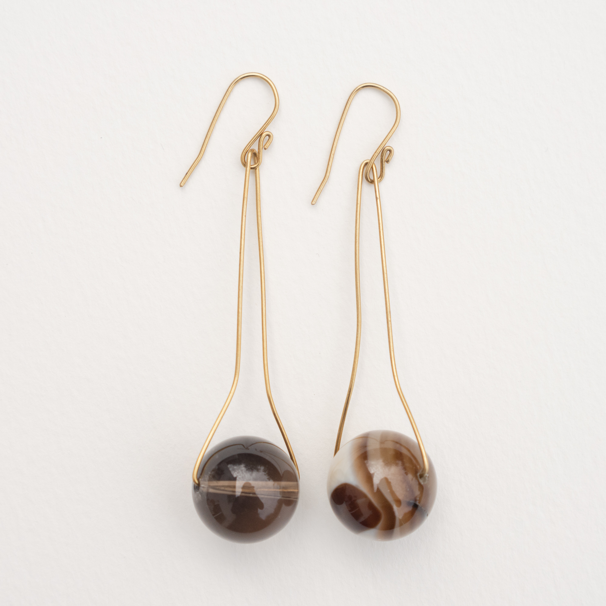 Fully handmade long earrings with hand-shaped pure brass and its beautiful agate from Botswana