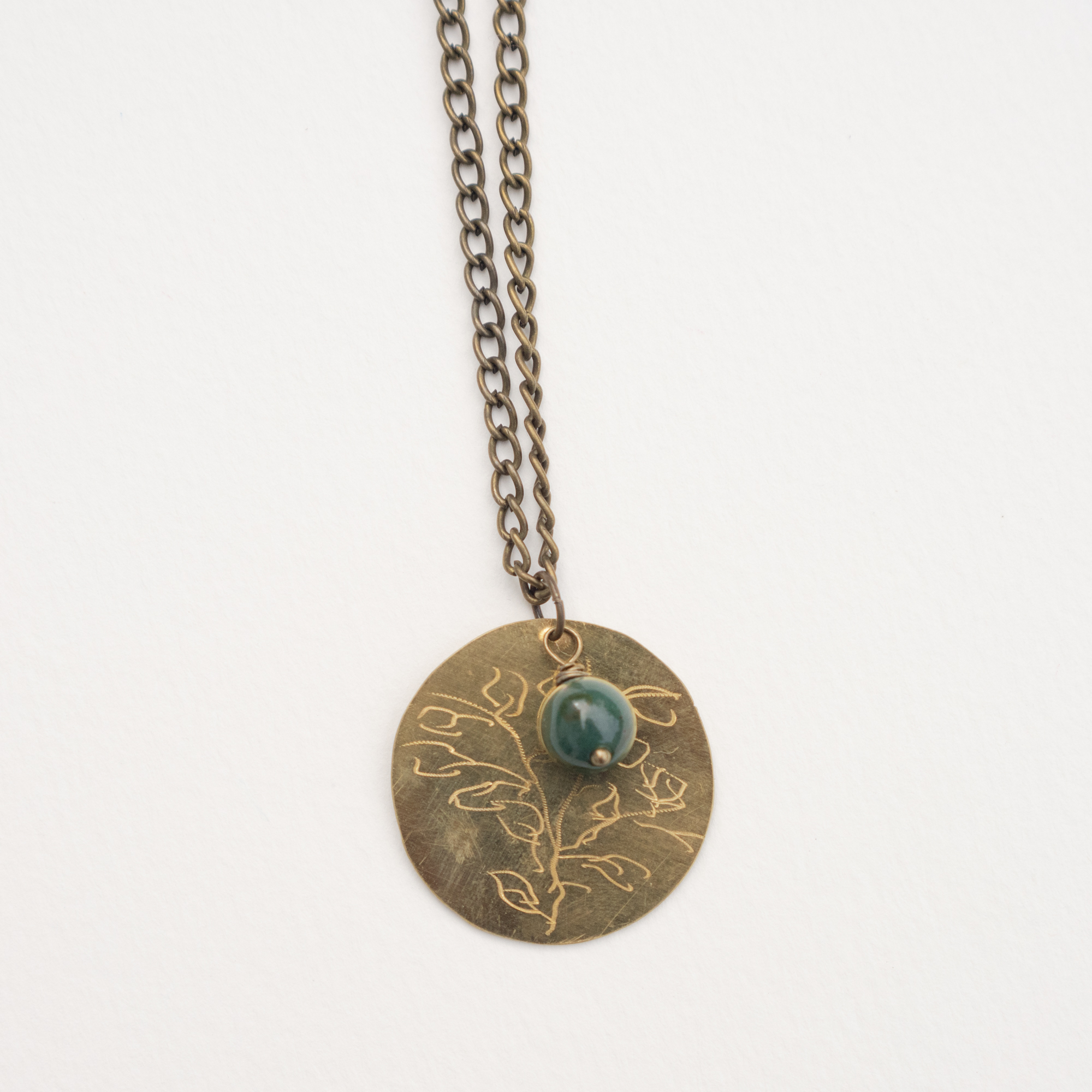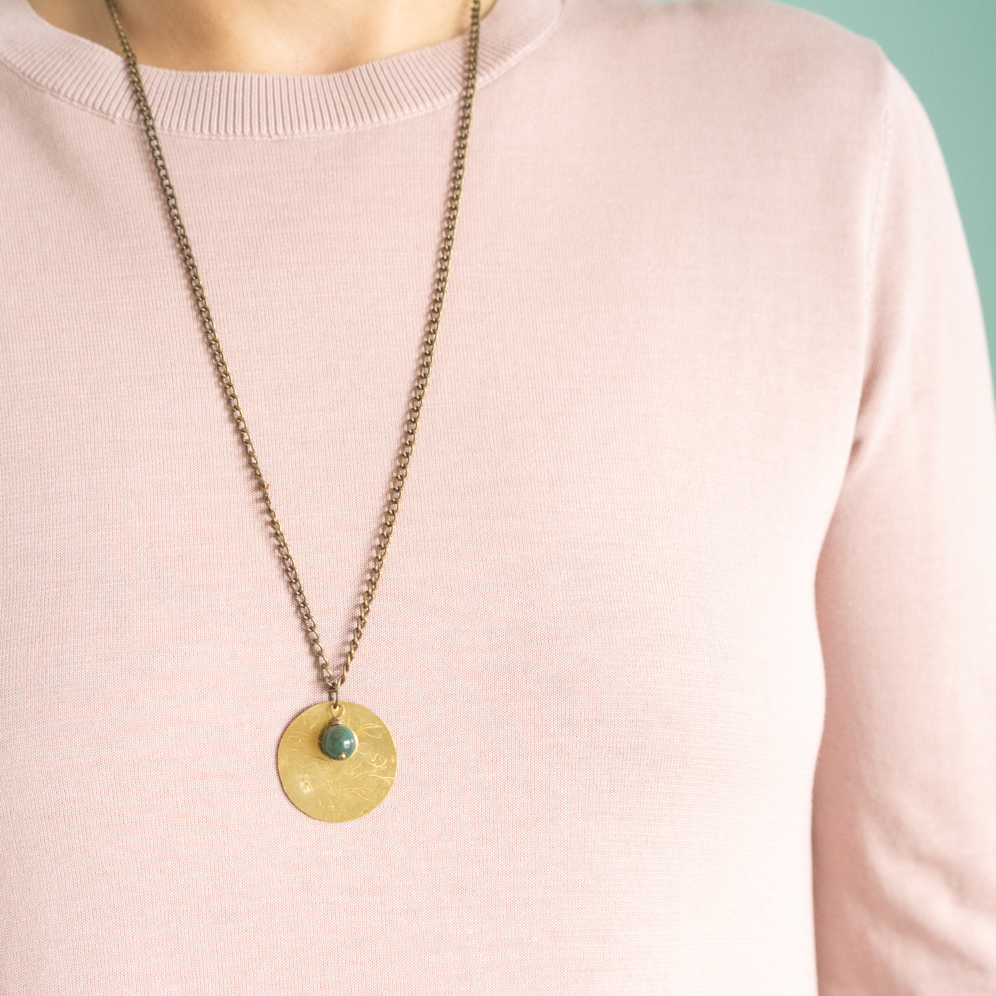 Hand-cut and hand-crafted pure brass necklace with aventurine