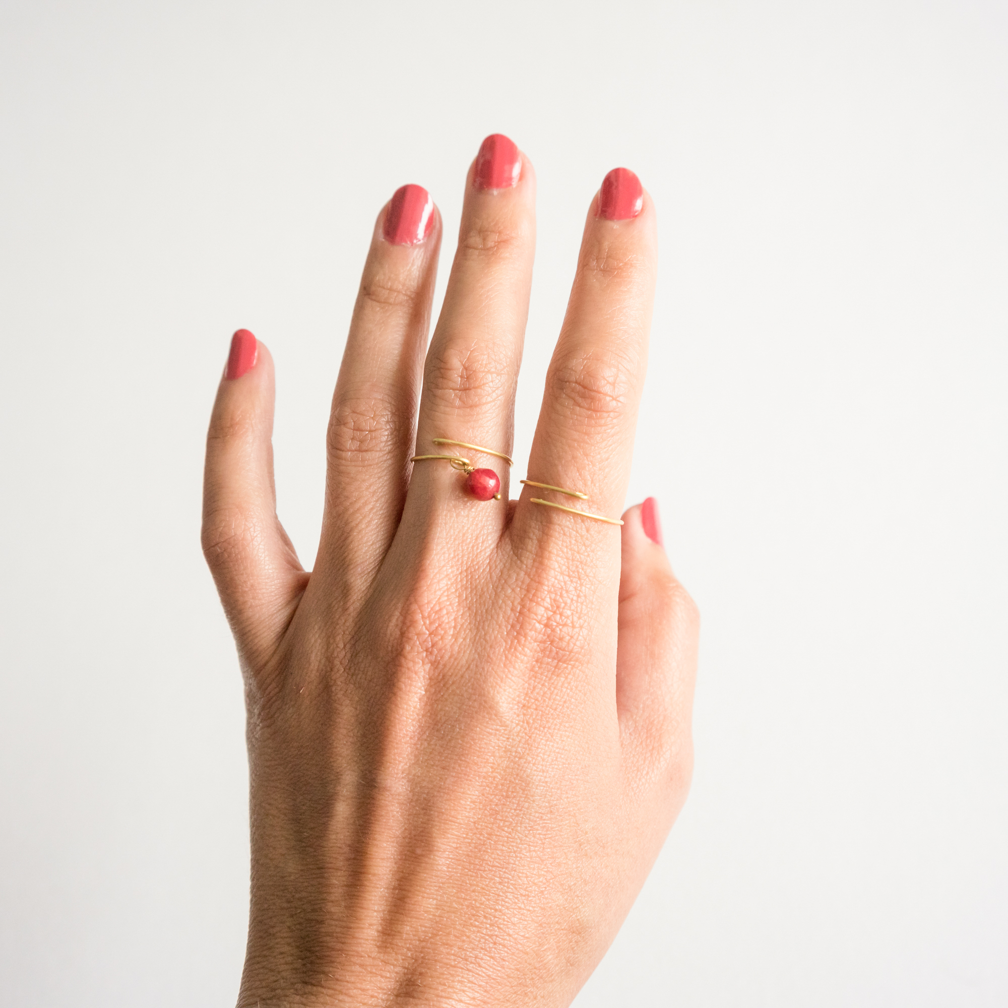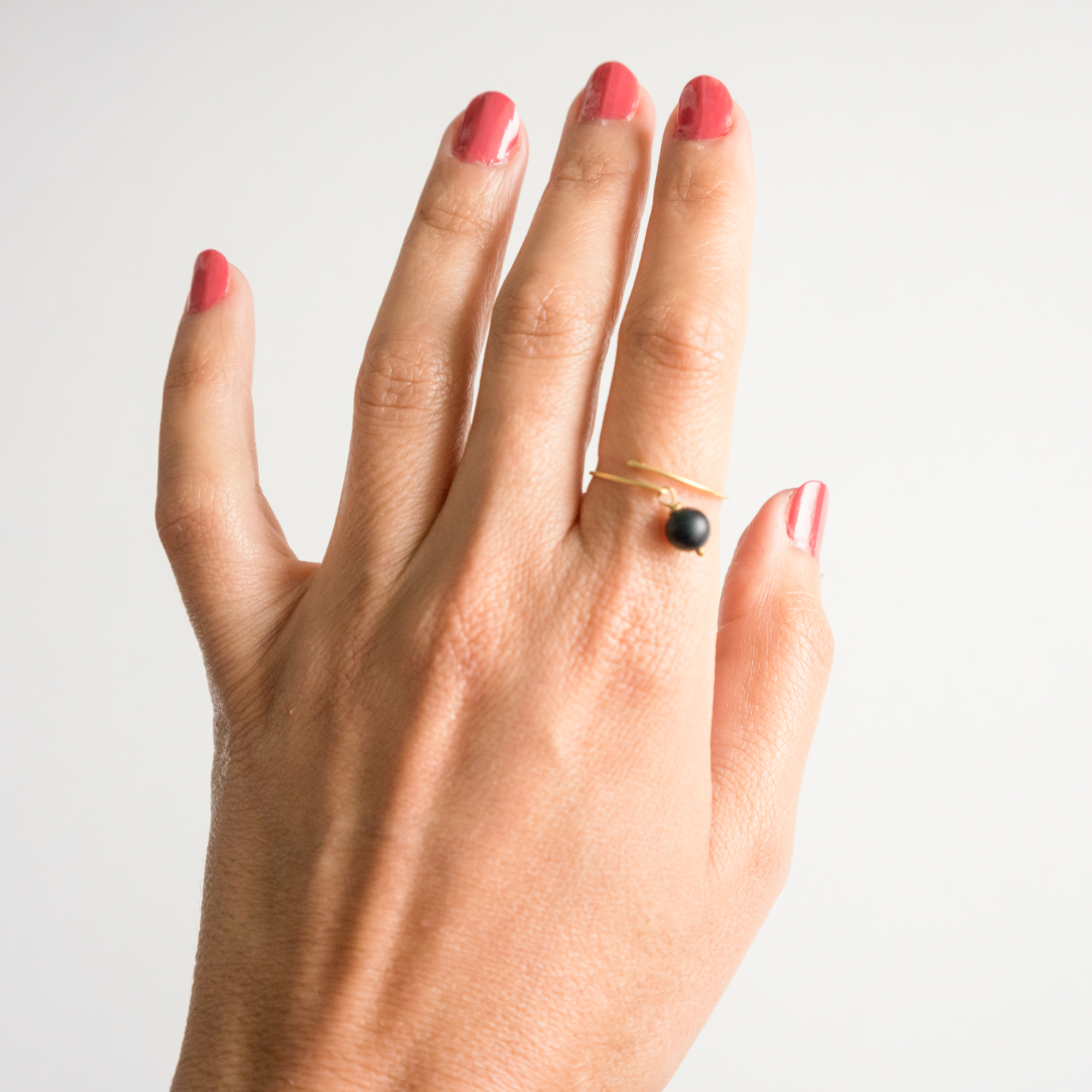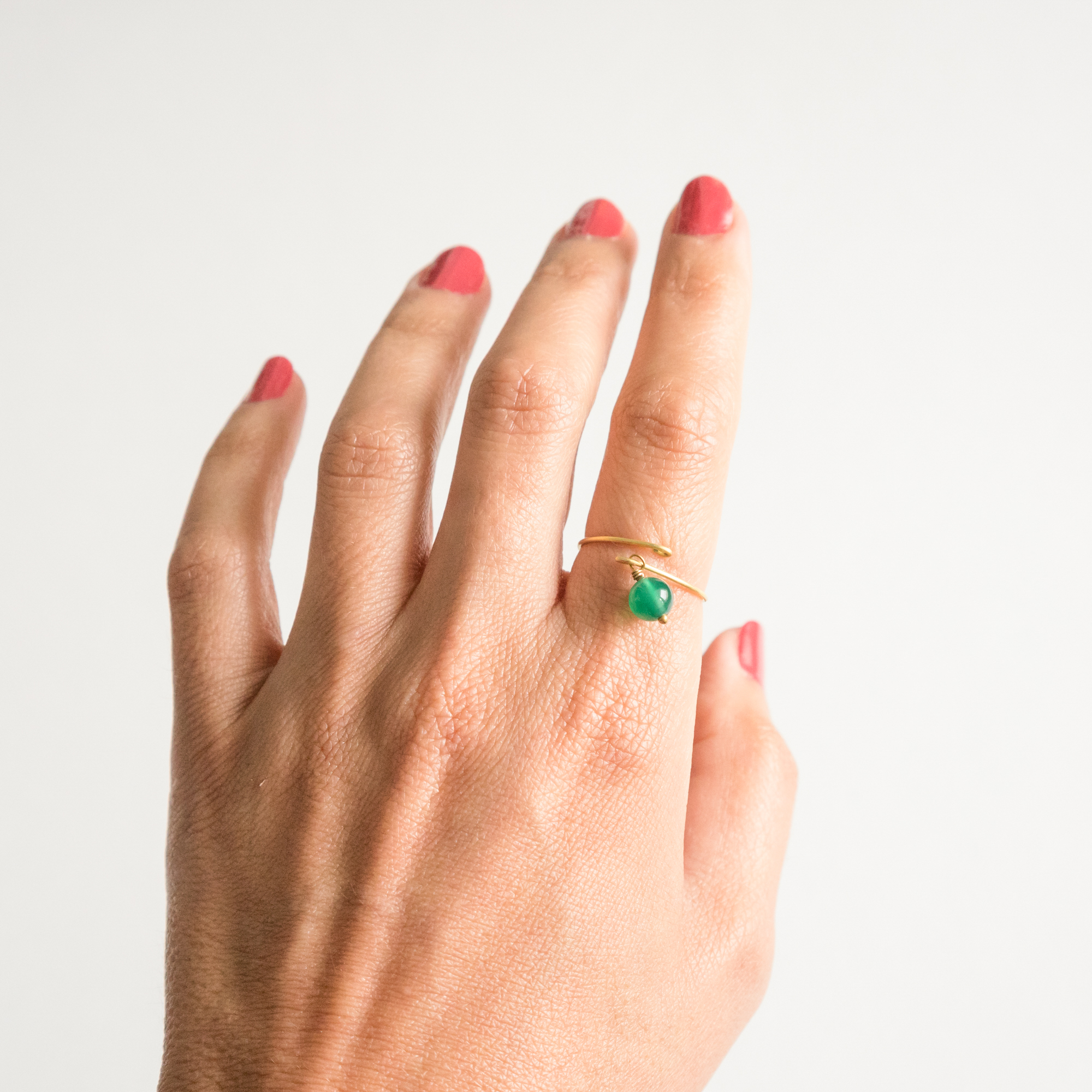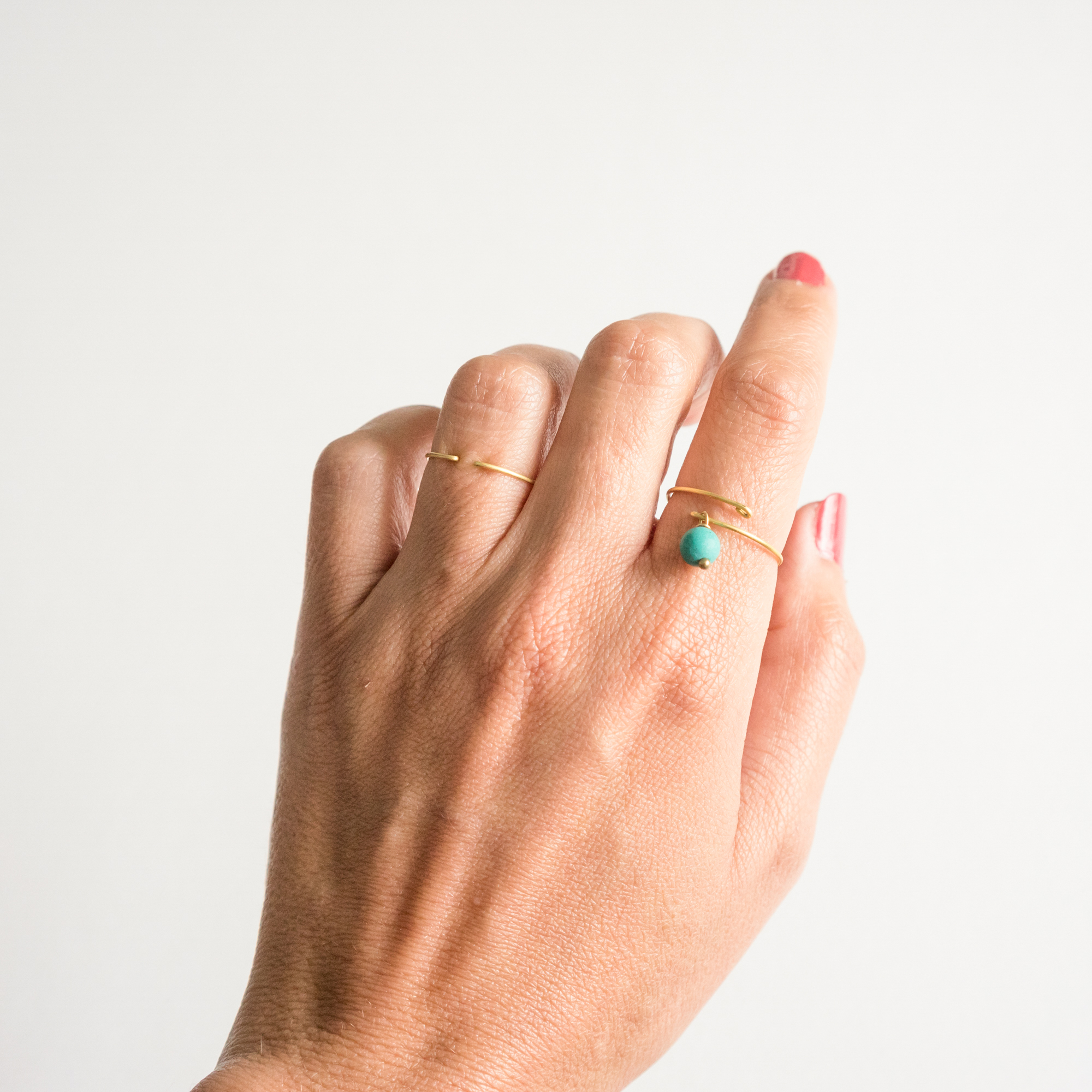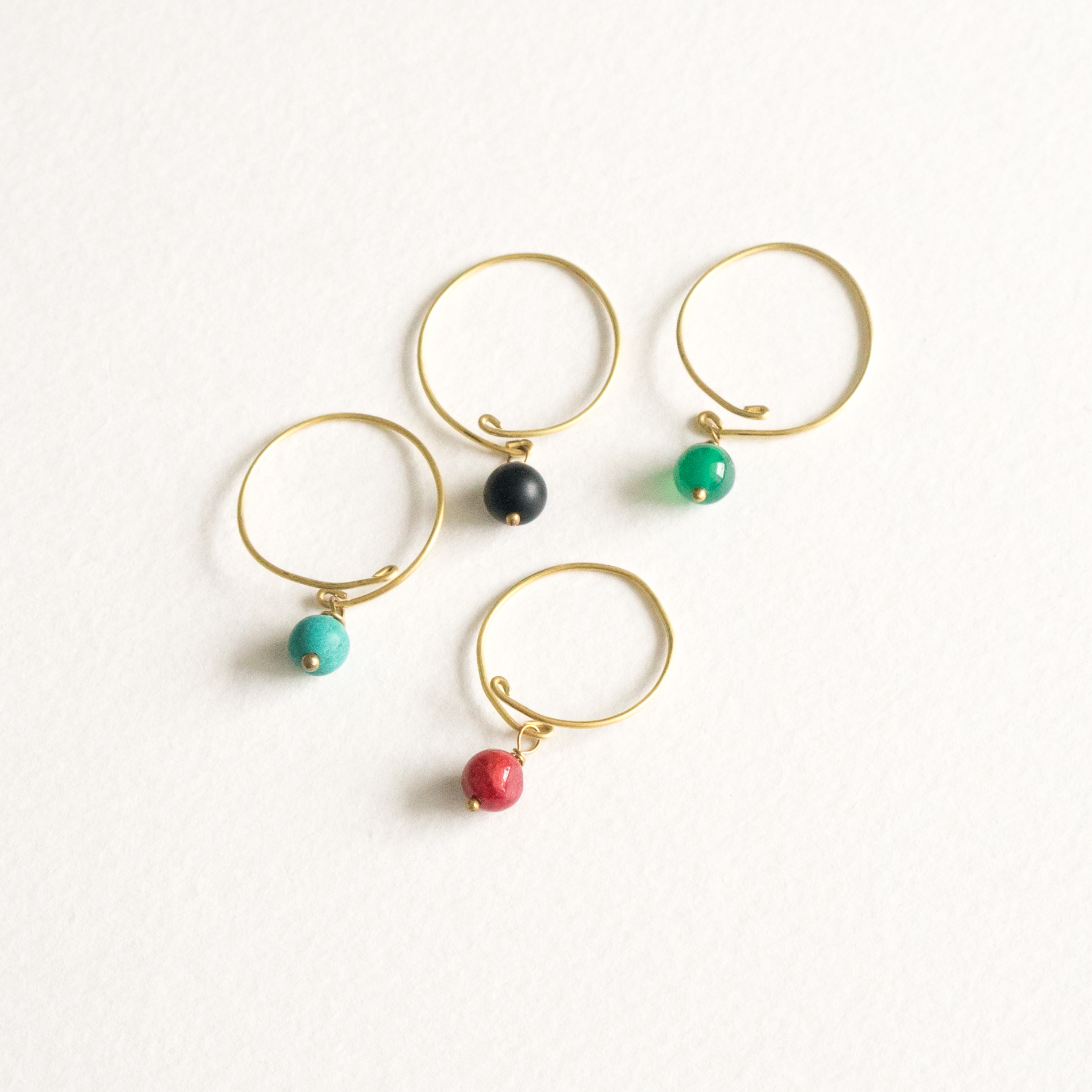 Handmade thin pure brass, with your choice of black agate, blue howlite, red quartz or aventurine