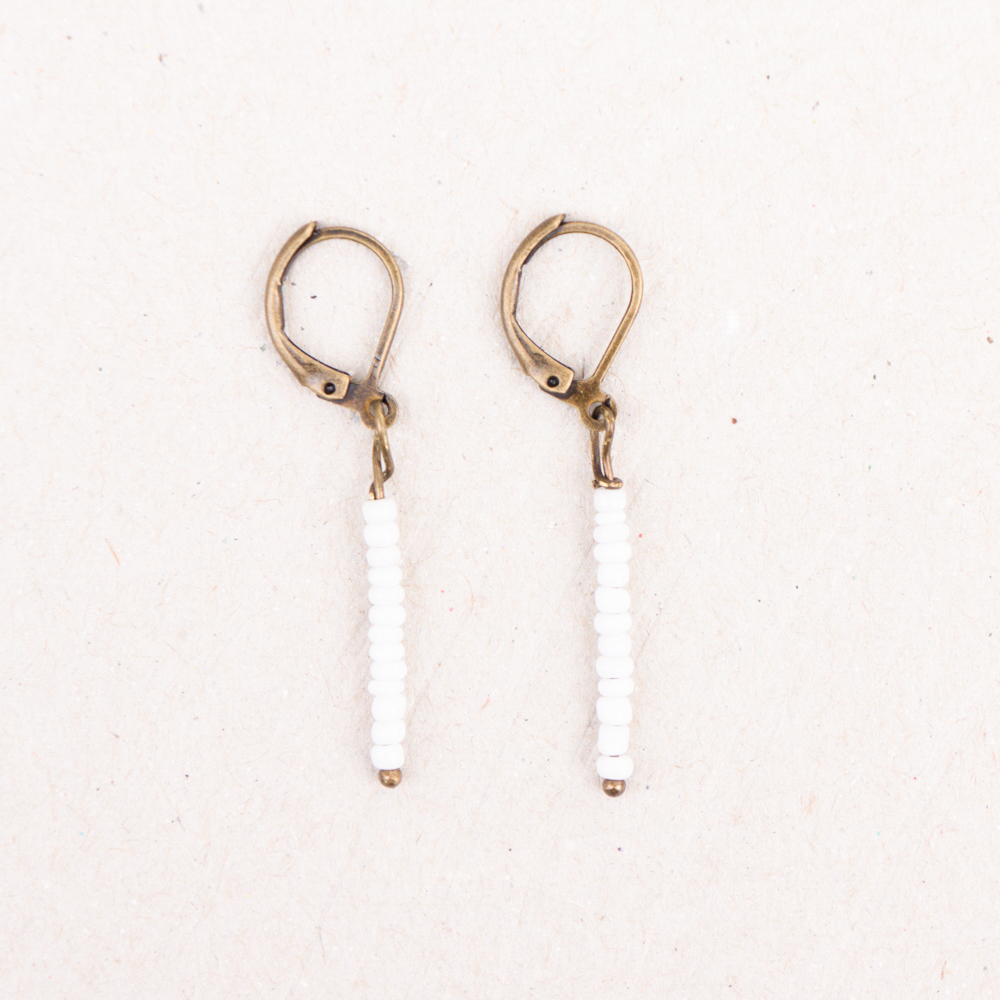 white glass beads on brass hook
